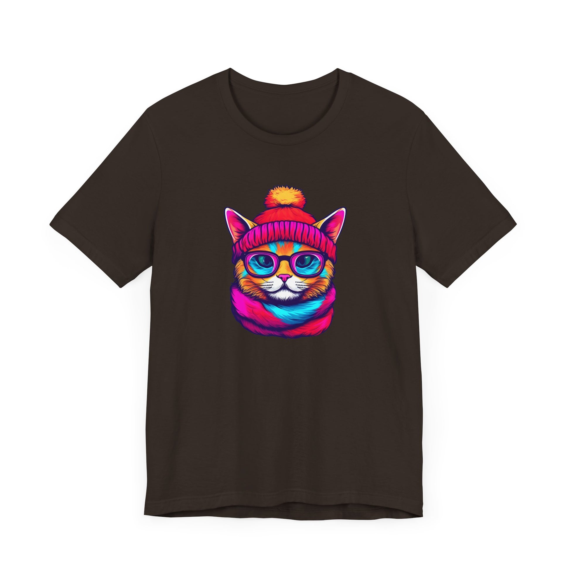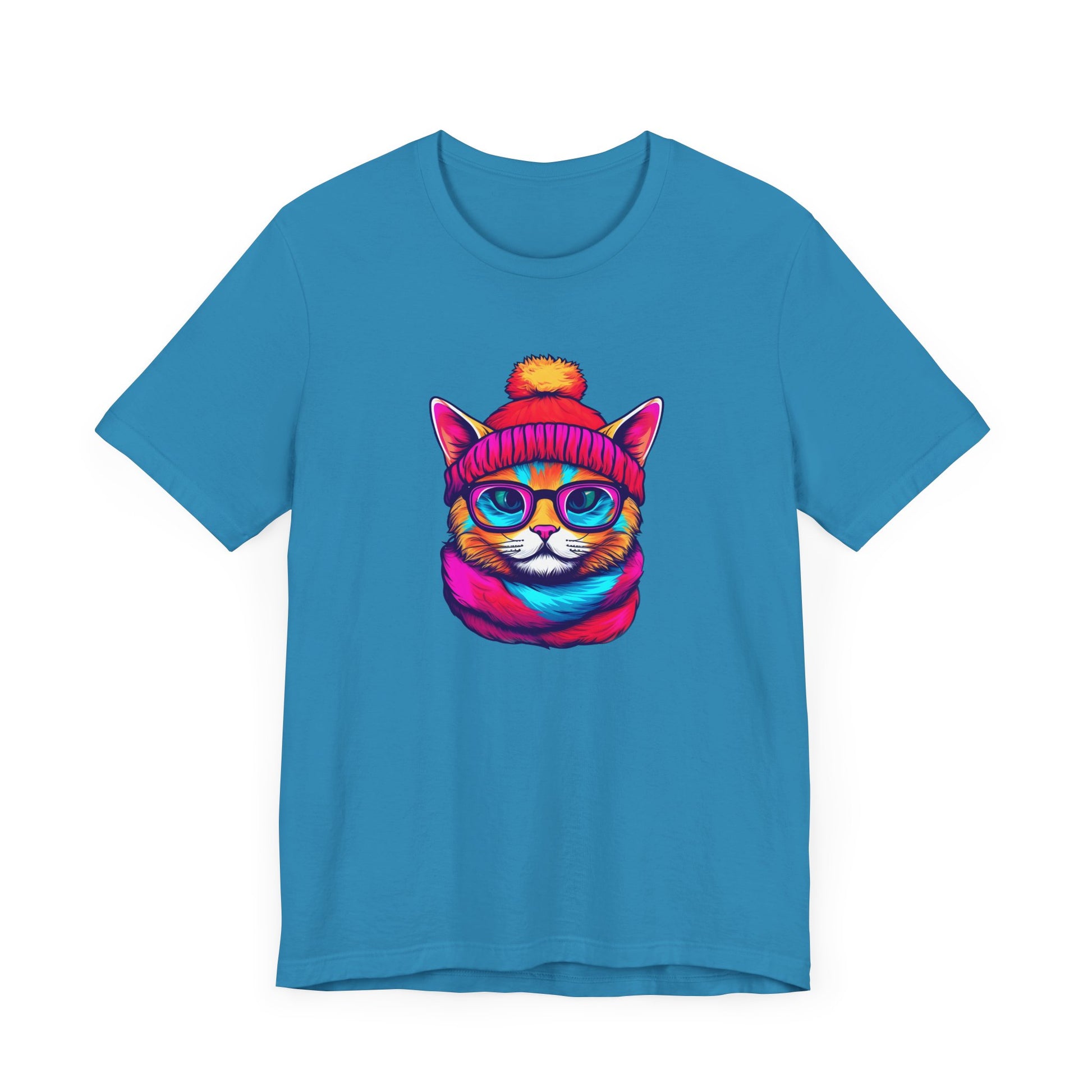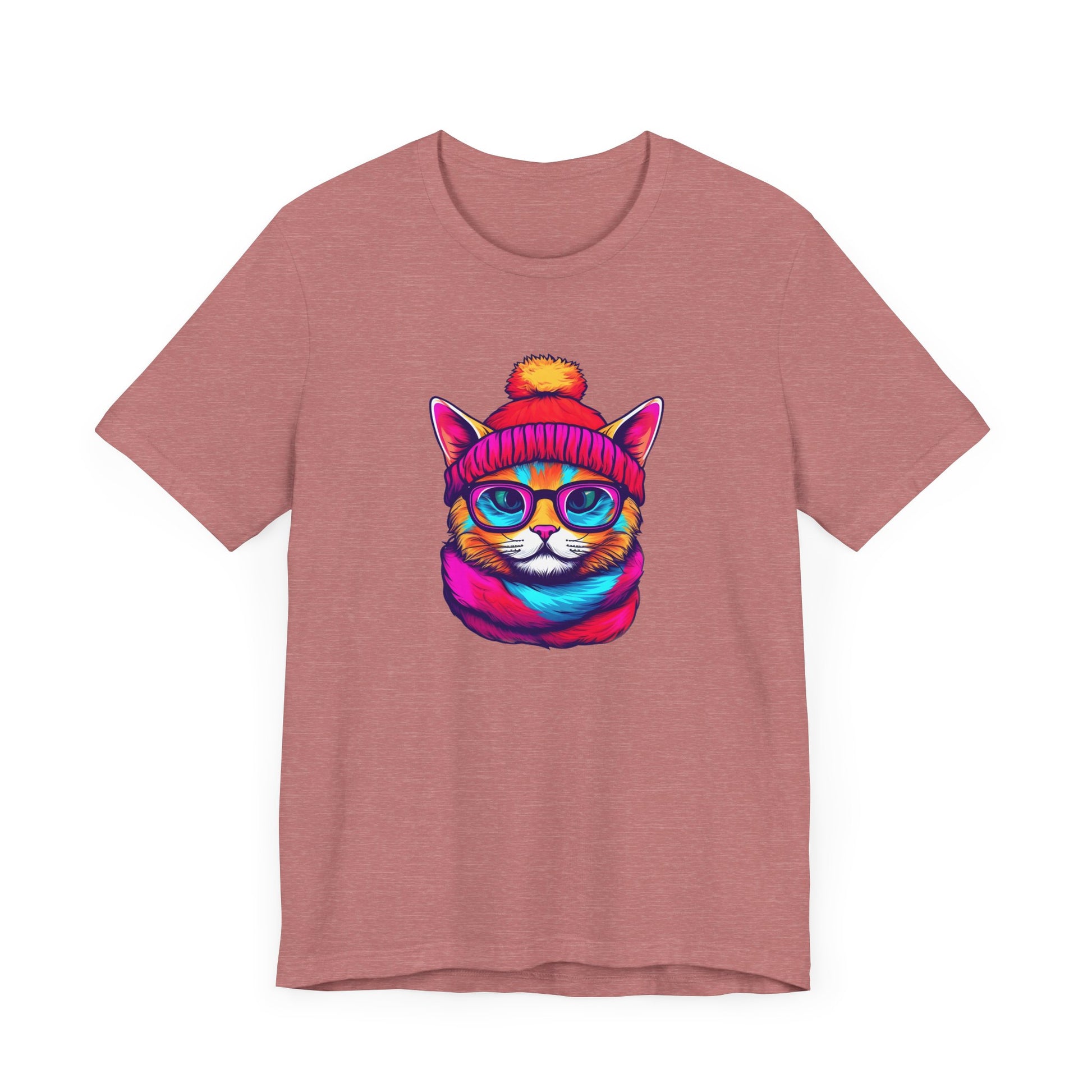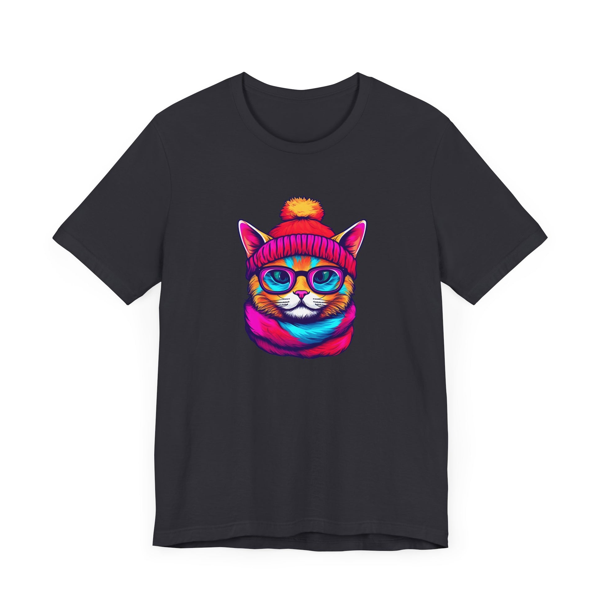Introducing our vibrant and trendy Unisex Graphic Tee, a must-have addition to your wardrobe! This eye-catching tee features a delightful and whimsical hipster cat illustration that is sure to capture the attention of all cat lovers and fashion enthusiasts alike.