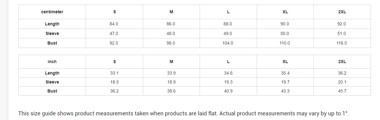 This size guide shows product measurements taken when products are laid flat. Actual product measurements may vary by up to 1".