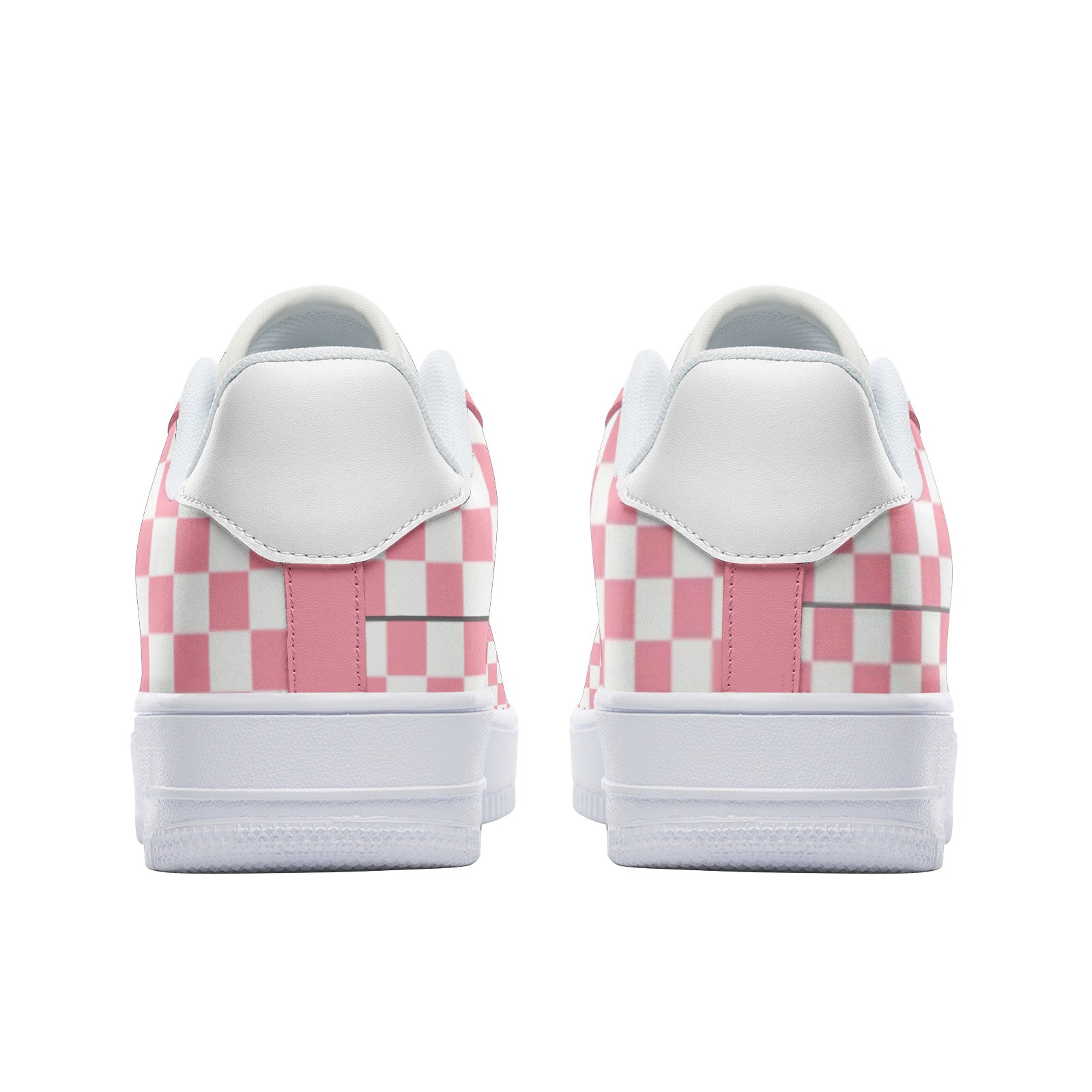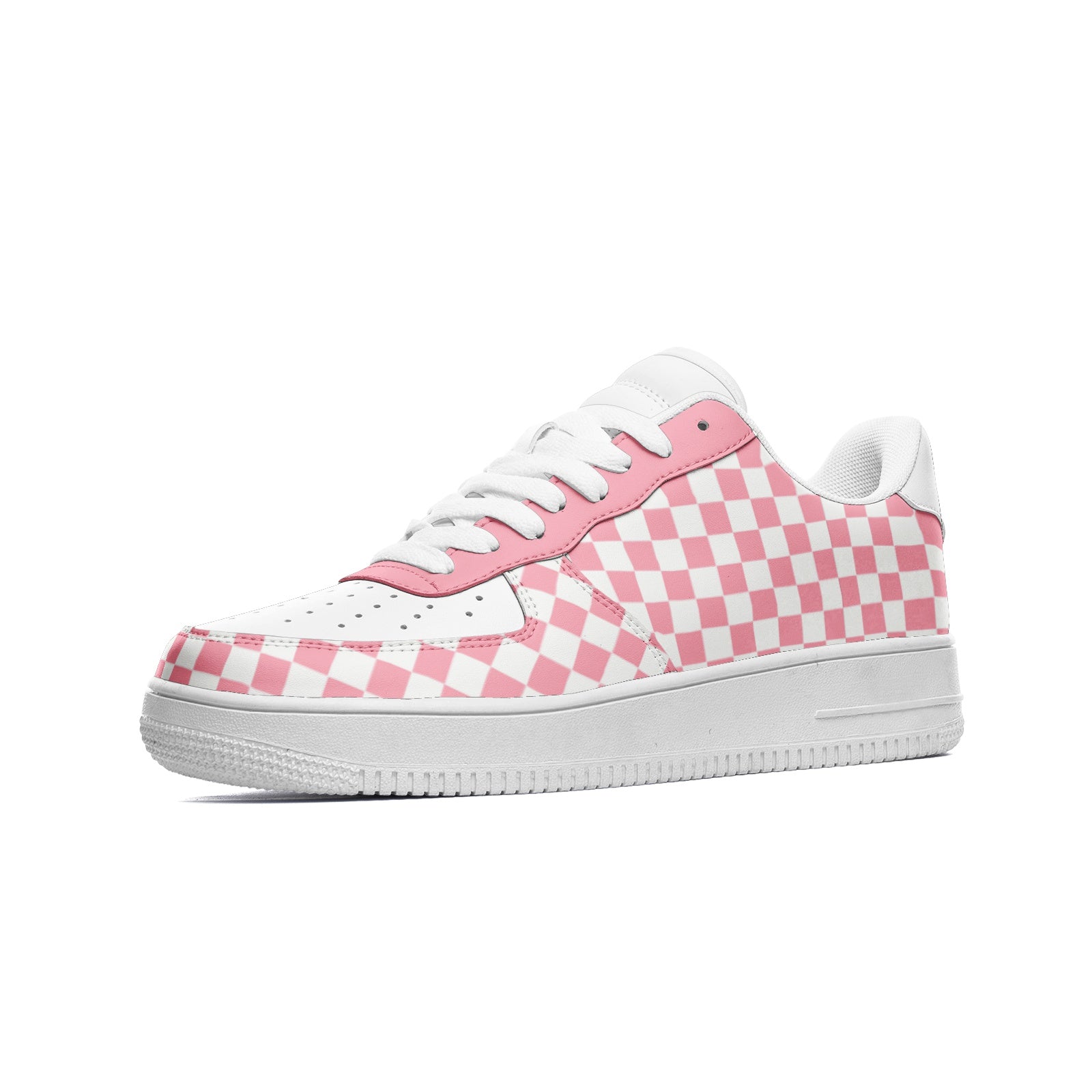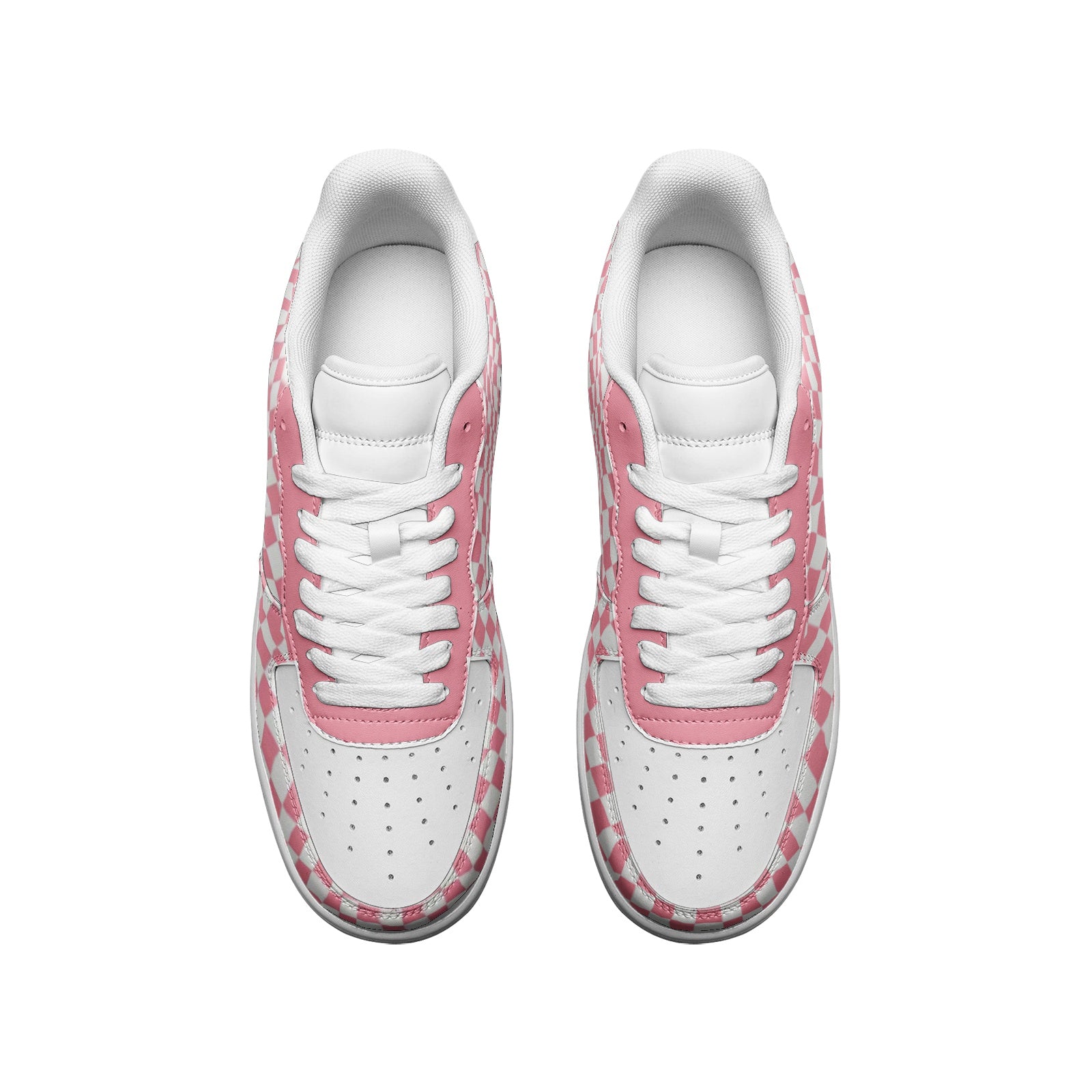 Step up your sneaker game with these bold and playful Pink & White Checkerboard Street Sneakers. Featuring a smooth white base with vibrant pink checkerboard panels and pastel overlays, these shoes bring a retro-meets-modern vibe to any outfit. Designed for both comfort and style, they pair perfectly with casual fits, from jeans to joggers. Durable rubber soles ensure everyday wearability while the cushioned interior keeps you moving all day.